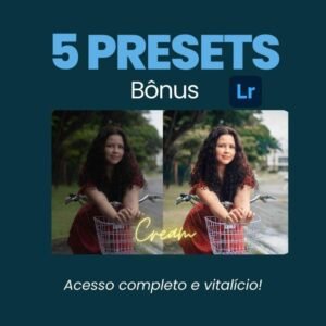 Você irá receber 5 presets especiais de bônus que eu uso nas minhas fotos! Com esses presets, editei para empresas como: Coca-cola, Hering, Grandes shoppings e +